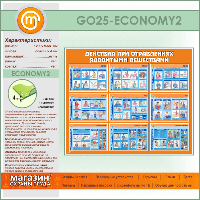 Стенд «Действия при отравлении ядовитыми веществами» (GO-25-ECONOMY2) в Ульяновске купить
