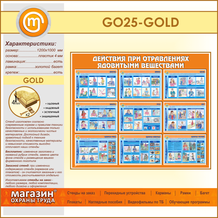 Стенд «Действия при отравлении ядовитыми веществами» (GO-25-GOLD) в Ульяновске купить