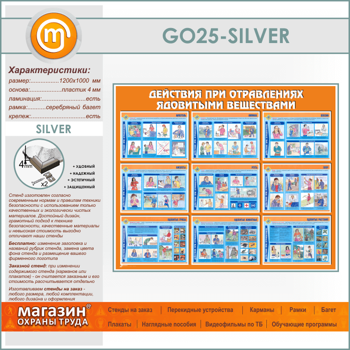 Стенд «Действия при отравлении ядовитыми веществами» (GO-25-SILVER) в Ульяновске купить