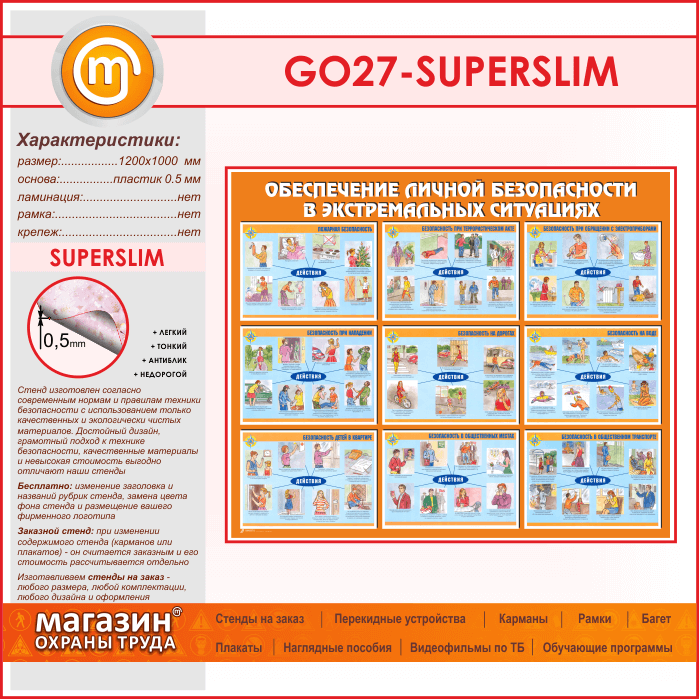 Стенд «Обеспечение личной безопасности в экстремальных ситуациях» (GO-27-SUPERSLIM) в Ульяновске купить