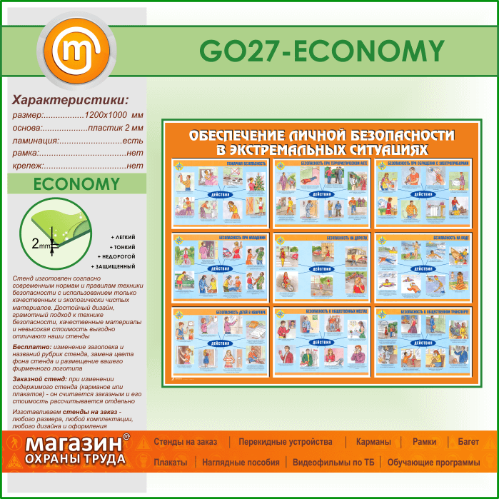Стенд «Обеспечение личной безопасности в экстремальных ситуациях» (GO-27-ECONOMY) в Ульяновске купить