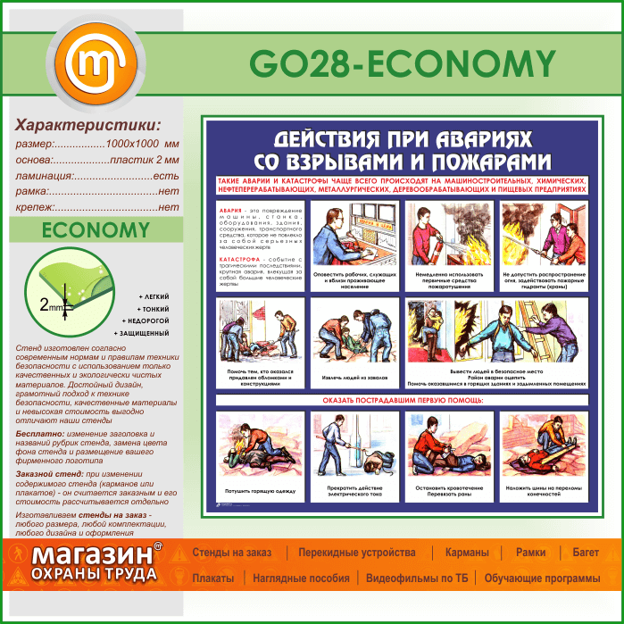Стенд «Действия при авариях со взрывами и пожарами» (GO-28-ECONOMY) в Ульяновске купить