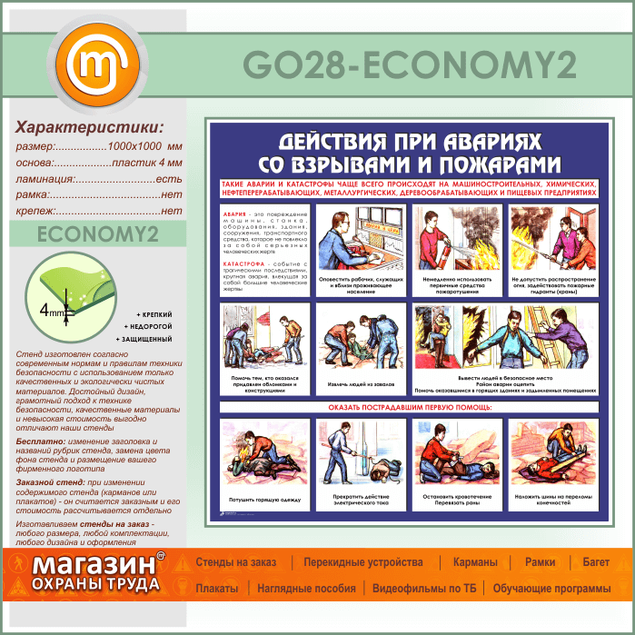 Стенд «Действия при авариях со взрывами и пожарами» (GO-28-ECONOMY2) в Ульяновске купить