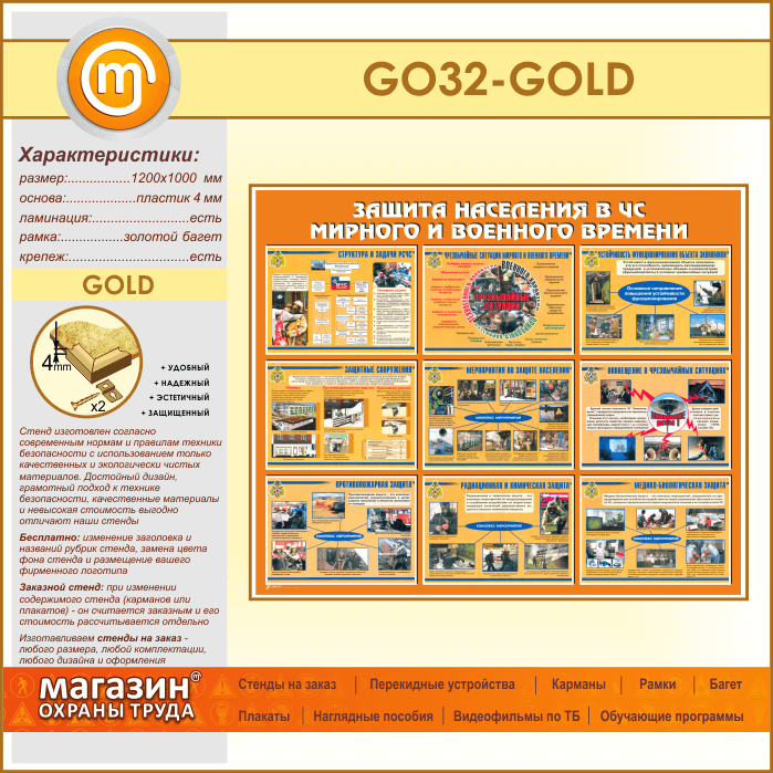Стенд «Защита населения в ЧС мирного и военного времени» (GO-32-GOLD) в Ульяновске купить