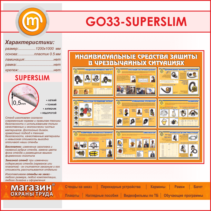 Стенд «Индивидуальные средства защиты в чрезвычайных ситуациях» (GO-33-SUPERSLIM) в Ульяновске купить