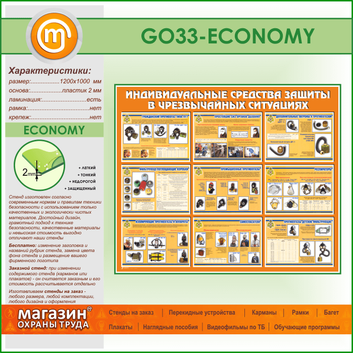 Стенд «Индивидуальные средства защиты в чрезвычайных ситуациях» (GO-33-ECONOMY) в Ульяновске купить