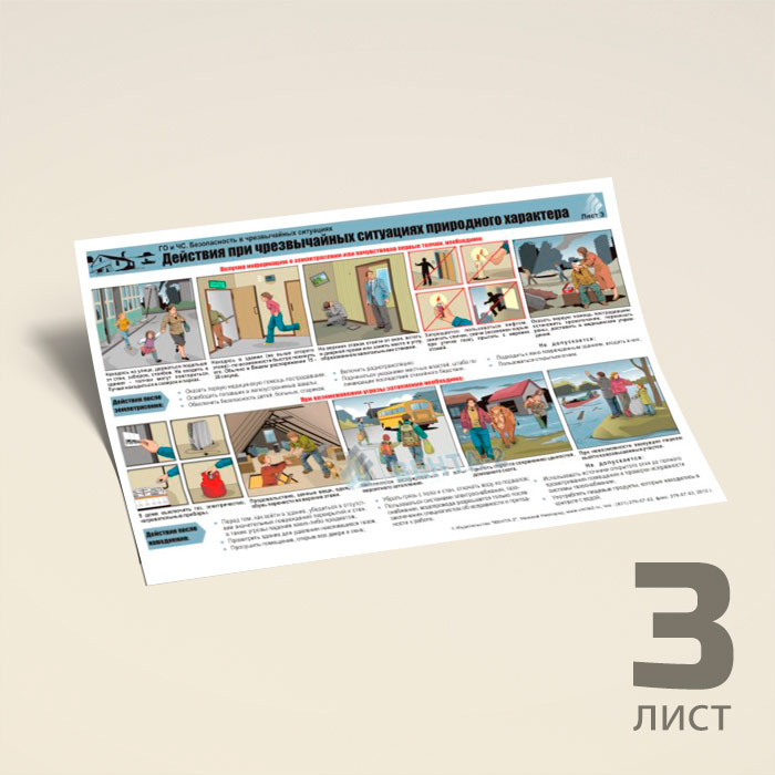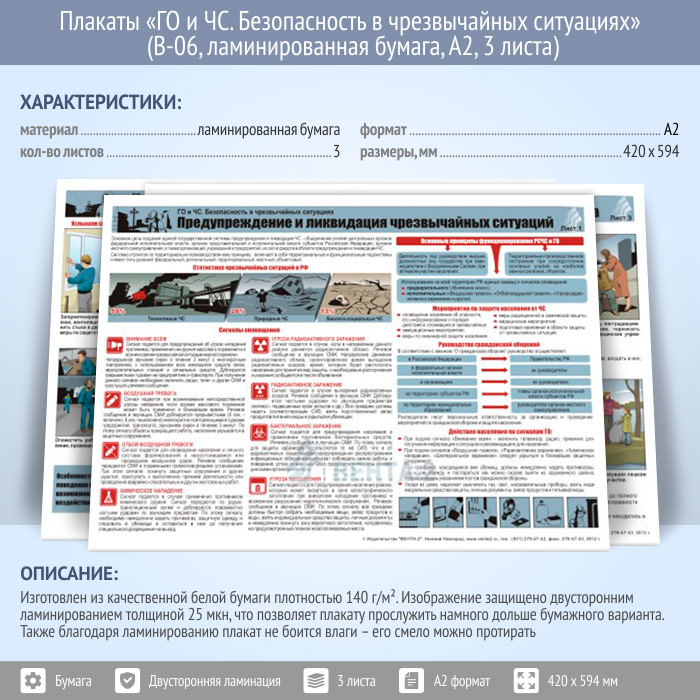 Плакаты «ГО и ЧС. Безопасность в чрезвычайных ситуациях» (В-06, ламинированная бумага, А2, 3 листа) в Ульяновске купить