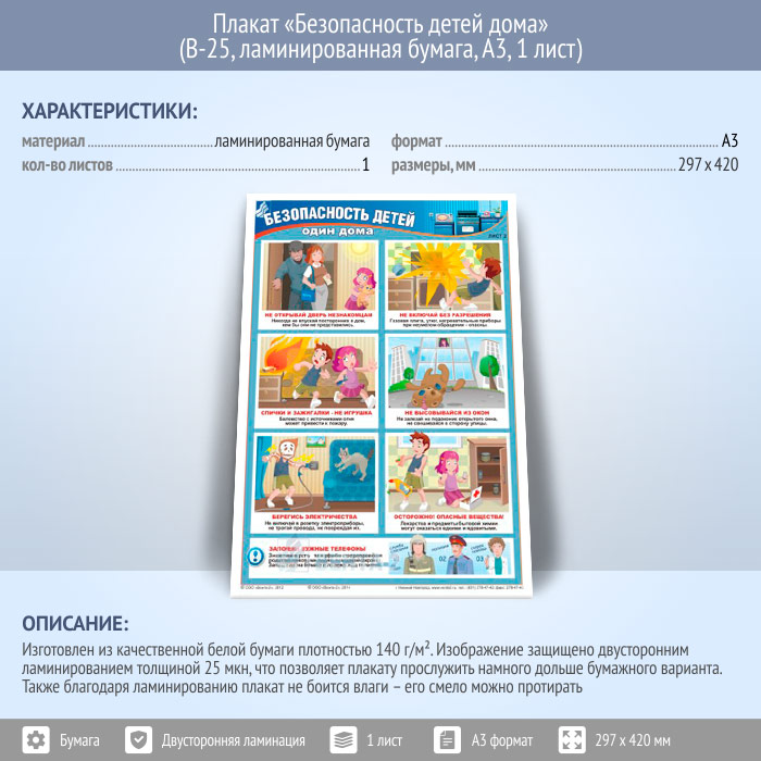 Плакат «Безопасность детей дома» (В-25, ламинированная бумага, А3, 1 лист) в Ульяновске купить