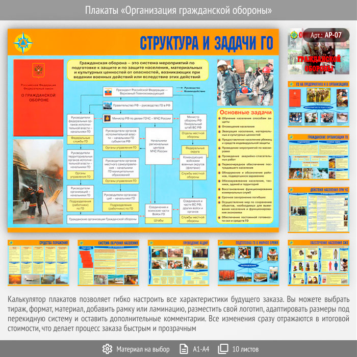 Плакаты «Организация гражданской обороны» (АР-07, 10 листов) в Ульяновске купить
