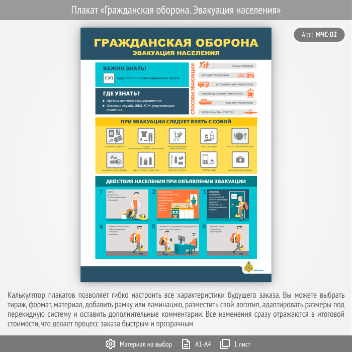 Плакат «Гражданская оборона. Эвакуация населения» (МЧС-02, 1 лист) в Ульяновске купить
