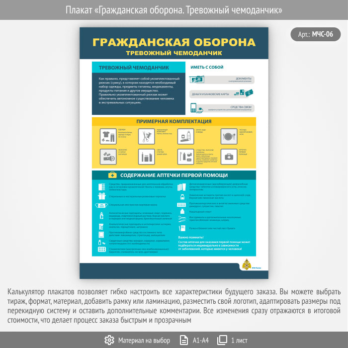 Плакат «Гражданская оборона. Тревожный чемоданчик» (МЧС-06, 1 лист) в Ульяновске купить