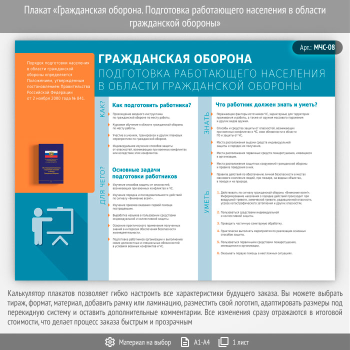 Плакат «Гражданская оборона. Подготовка работающего населения в области гражданской обороны» (МЧС-08, 1 лист) в Ульяновске купить