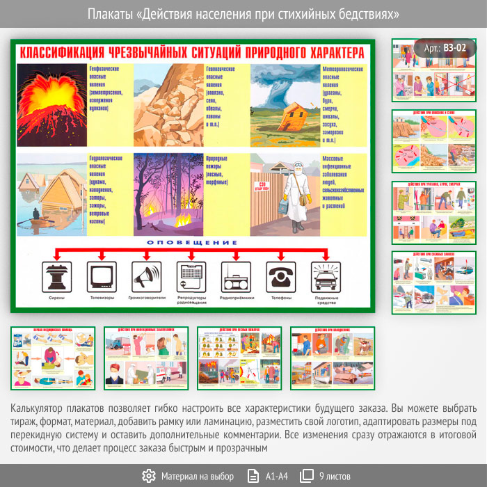Плакаты «Действия населения при стихийных бедствиях» (ВЗ-02, 9 листов) в Ульяновске купить
