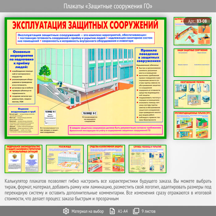Плакаты «Защитные сооружения ГО» (ВЗ-08, 9 листов) в Ульяновске купить