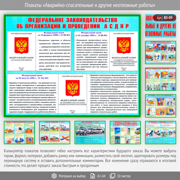 Плакаты «Аварийно-спасательные и другие неотложные работы» (ВЗ-09, 9 листов) в Ульяновске купить