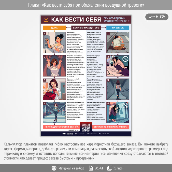 Плакат «Как вести себя при объявлении воздушной тревоги» с QR (М-139, 1 лист) в Ульяновске купить