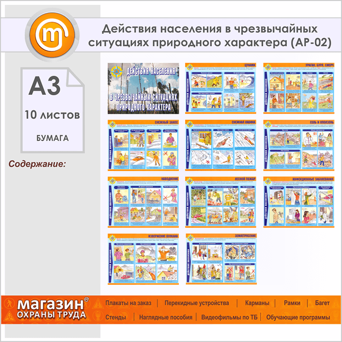 Плакаты «Действия населения в чрезвычайных ситуациях природного характера» (АР-02, бумага, А3, 10 листов) в Ульяновске купить
