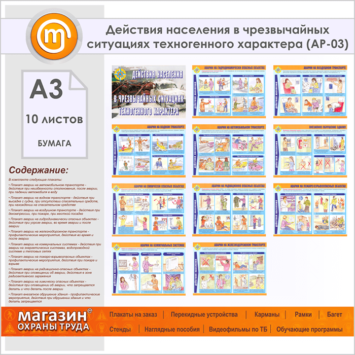 Плакаты «Действия населения в чрезвычайных ситуациях техногенного характера» (АР-03, бумага, А3, 10 листов) в Ульяновске купить