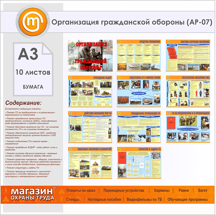 Плакаты «Организация гражданской обороны» (АР-07, бумага, А3, 10 листов) в Ульяновске купить