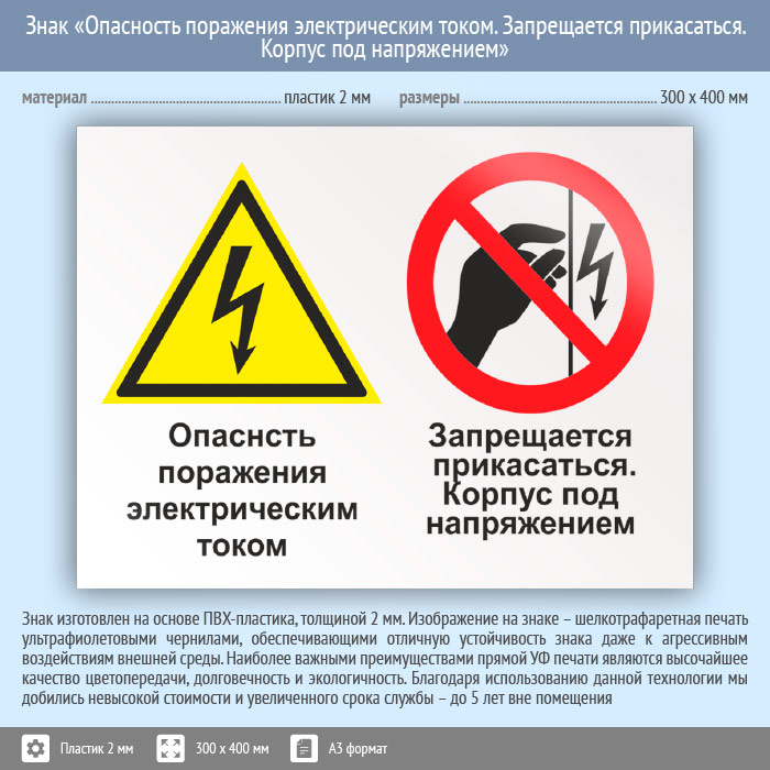 Знак «Опасность поражения электрическим током. Запрещается прикасаться. Корпус под напряжением», КЗ-47 (пластик, 400х300 мм) в Ульяновске купить