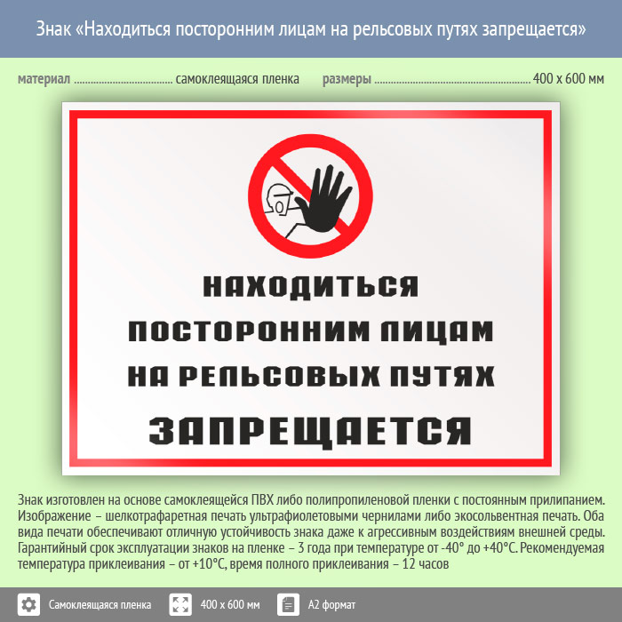 Знак «Находиться посторонним лицам на рельсовых путях запрещается», КЗ-25 (пленка, 600х400 мм) в Ульяновске купить