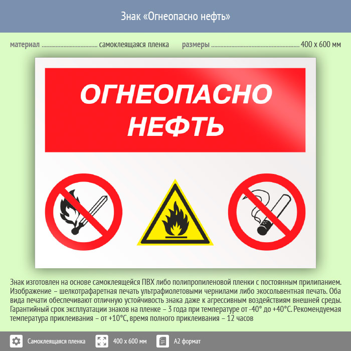 Знак «Огнеопасно нефть», КЗ-31 (пленка, 600х400 мм) в Ульяновске купить