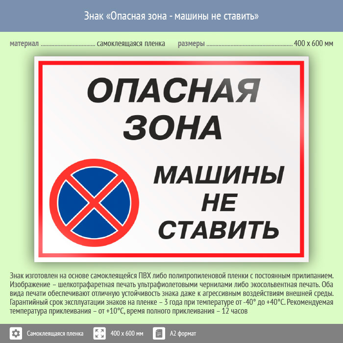 Знак «Опасная зона - машины не ставить», КЗ-32 (пленка, 600х400 мм) в Ульяновске купить
