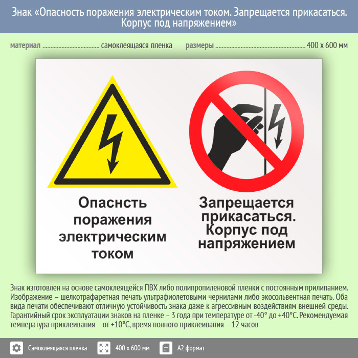 Знак «Опасность поражения электрическим током. Запрещается прикасаться. Корпус под напряжением», КЗ-47 (пленка, 600х400 мм) в Ульяновске купить