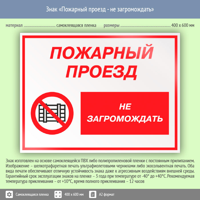 Знак «Пожарный проезд - не загромождать», КЗ-67 (пленка, 600х400 мм) в Ульяновске купить