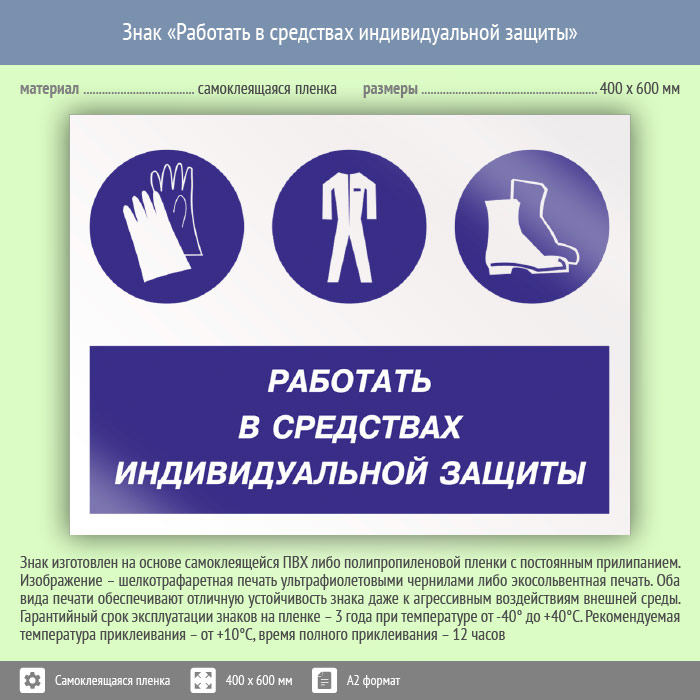 Знак «Работать в средствах индивидуальной защиты», КЗ-81 (пленка, 600х400 мм) в Ульяновске купить
