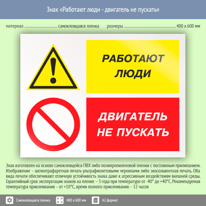 Знак «Работают люди - двигатель не пускать», КЗ-82 (пленка, 600х400 мм) в Ульяновске купить