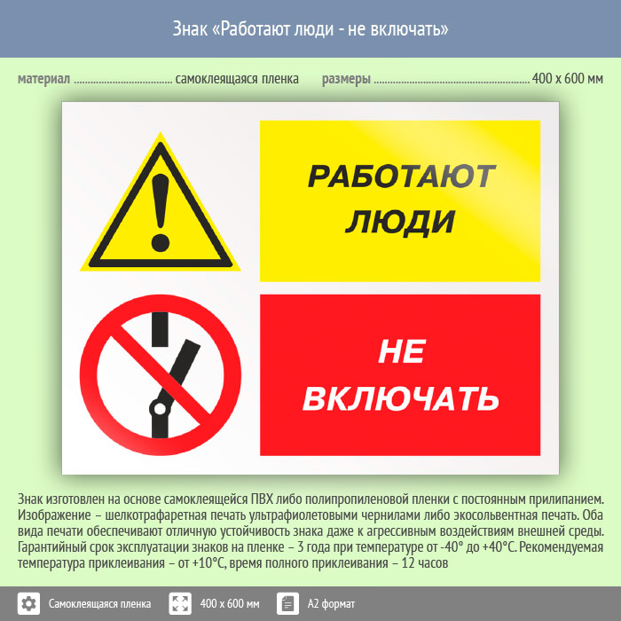 Знак «Работают люди - не включать», КЗ-83 (пленка, 600х400 мм) в Ульяновске купить