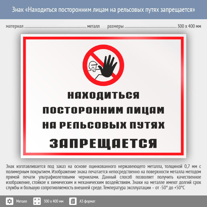 Знак «Находиться посторонним лицам на рельсовых путях запрещается», КЗ-25 (металл, 400х300 мм) в Ульяновске купить