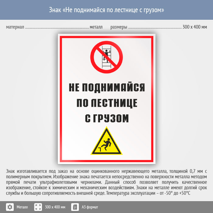 Знак «Не поднимайся по лестнице с грузом», КЗ-28 (металл, 300х400 мм) в Ульяновске купить