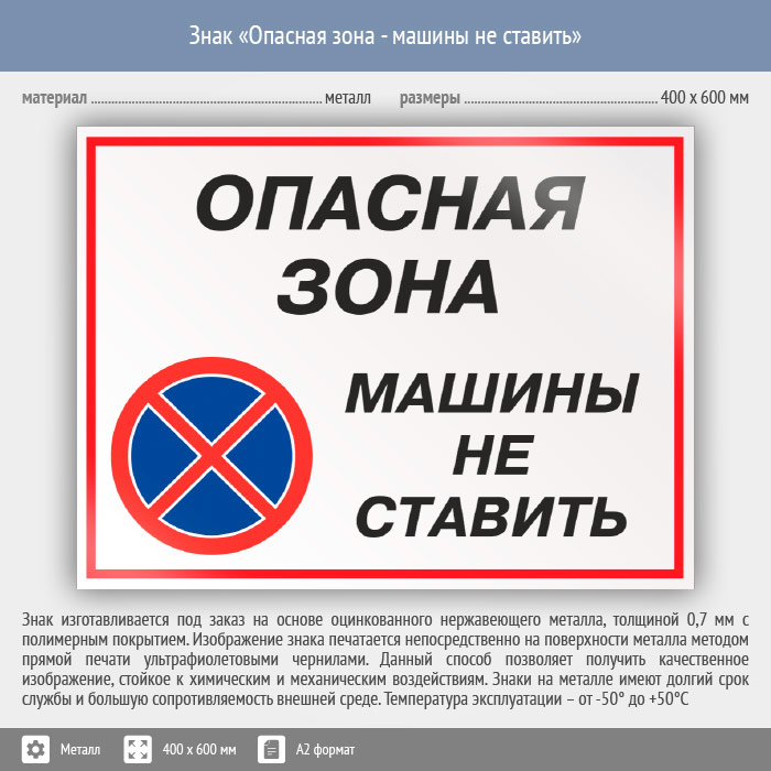 Знак «Опасная зона - машины не ставить», КЗ-32 (металл, 600х400 мм) в Ульяновске купить