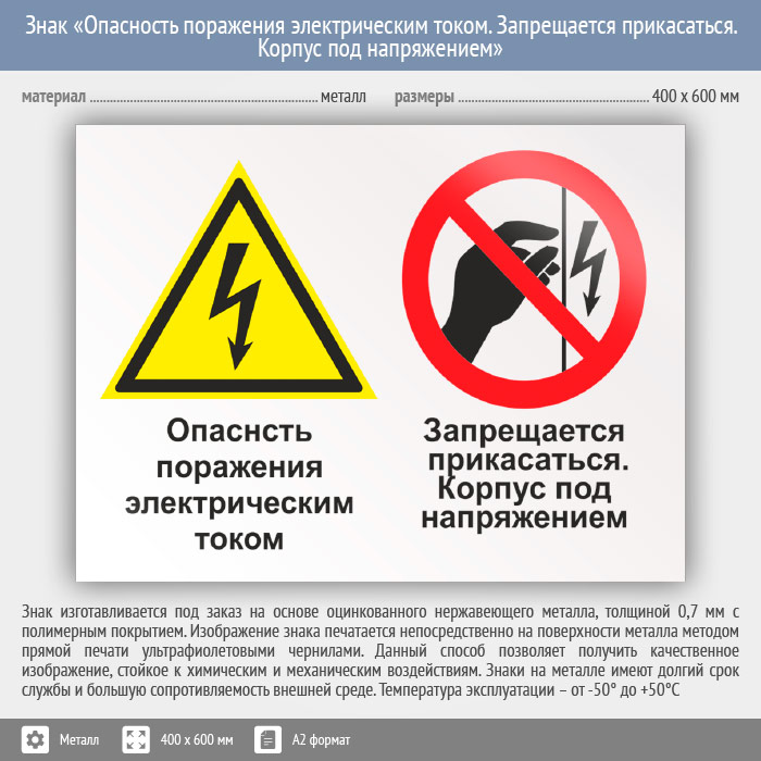 Знак «Опасность поражения электрическим током. Запрещается прикасаться. Корпус под напряжением», КЗ-47 (металл, 600х400 мм) в Ульяновске купить