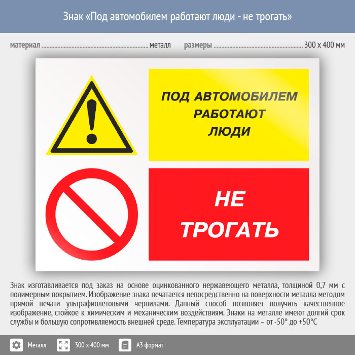 Знак «Под автомобилем работают люди - не трогать», КЗ-66 (металл, 400х300 мм) в Ульяновске купить