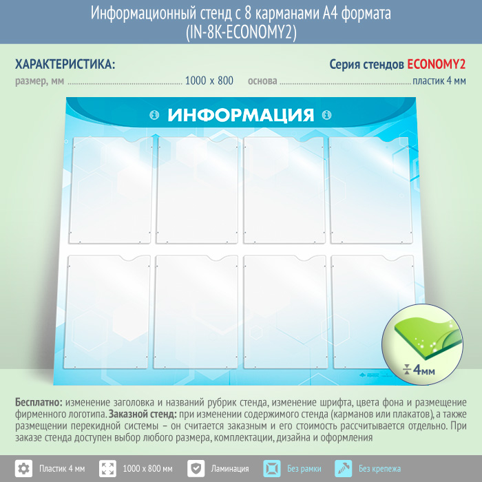 Информационный стенд с 8 карманами А4 формата (IN-8K-ECONOMY2) в Ульяновске купить