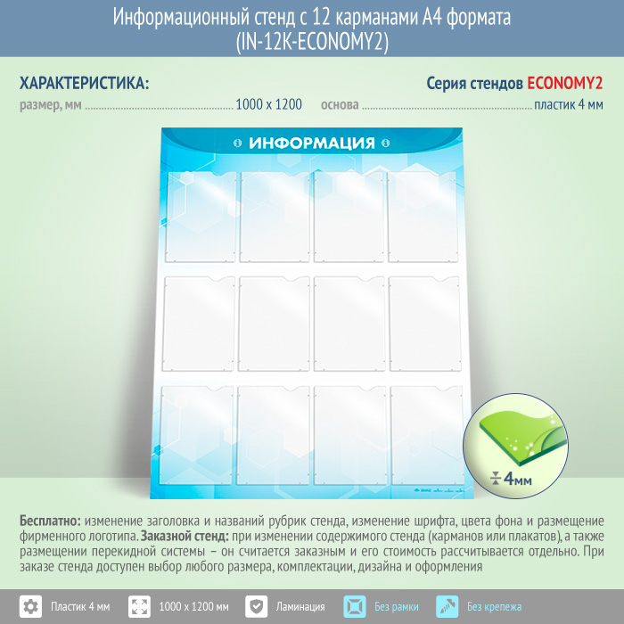 Информационный стенд с 12 карманами А4 формата (IN-12K-ECONOMY2) в Ульяновске купить