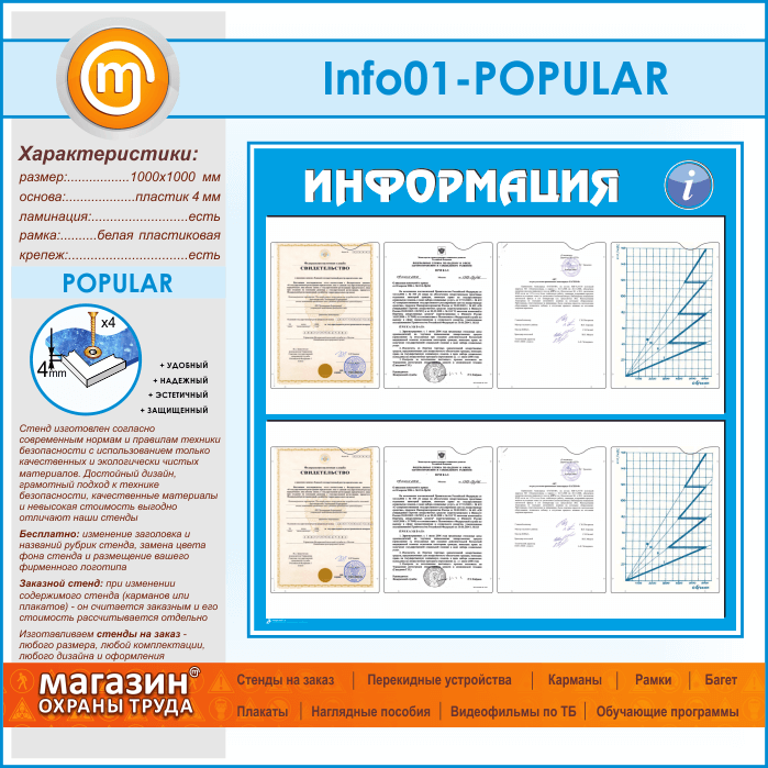 Стенд «Информация» с 8 карманами А4 формата (IN-01-POPULAR) в Ульяновске купить
