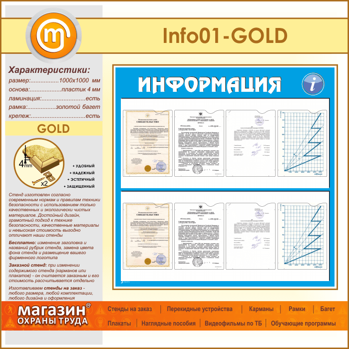 Стенд «Информация» с 8 карманами А4 формата (IN-01-GOLD) в Ульяновске купить