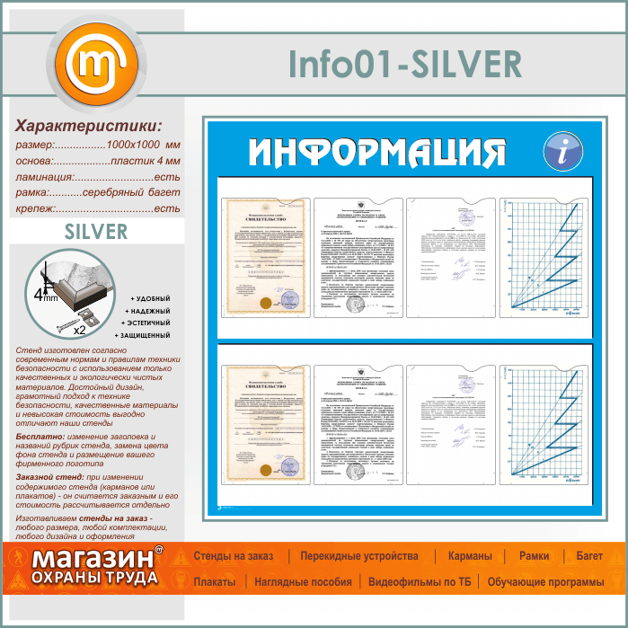 Стенд «Информация» с 8 карманами А4 формата (IN-01-SILVER) в Ульяновске купить