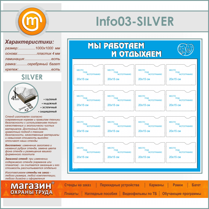 Стенд «Мы работаем и отдыхаем» с 16 карманами А5 формата (IN-03-SILVER) в Ульяновске купить