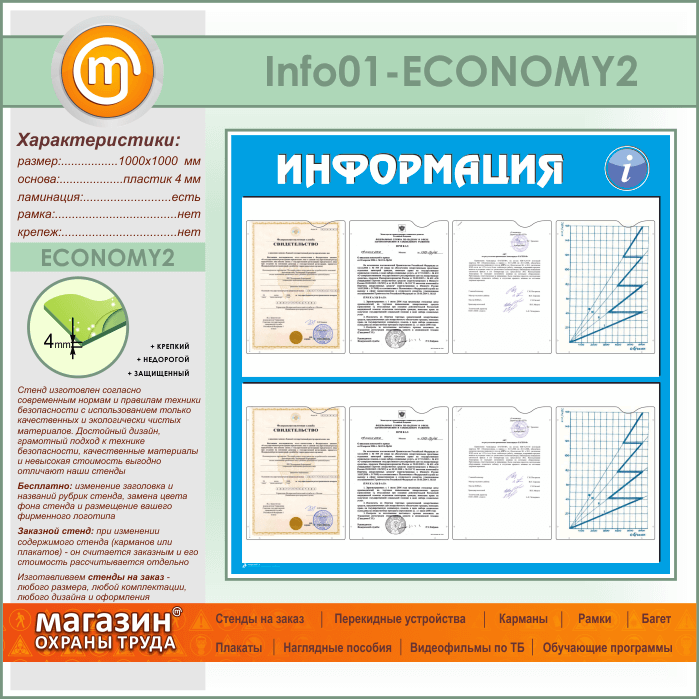 Стенд «Информация» с 8 карманами А4 формата (IN-01-ECONOMY2) в Ульяновске купить