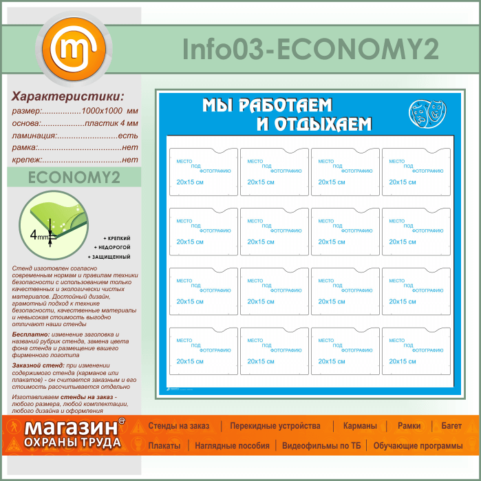 Стенд «Мы работаем и отдыхаем» с 16 карманами А5 формата (IN-03-ECONOMY2) в Ульяновске купить