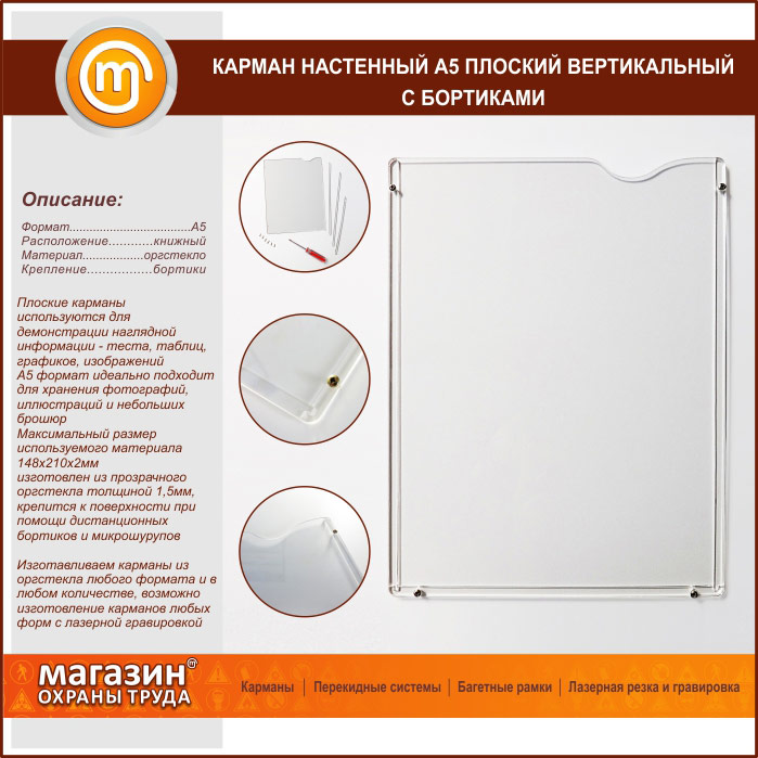 Карман настенный А5 плоский вертикальный с бортиками в Ульяновске купить