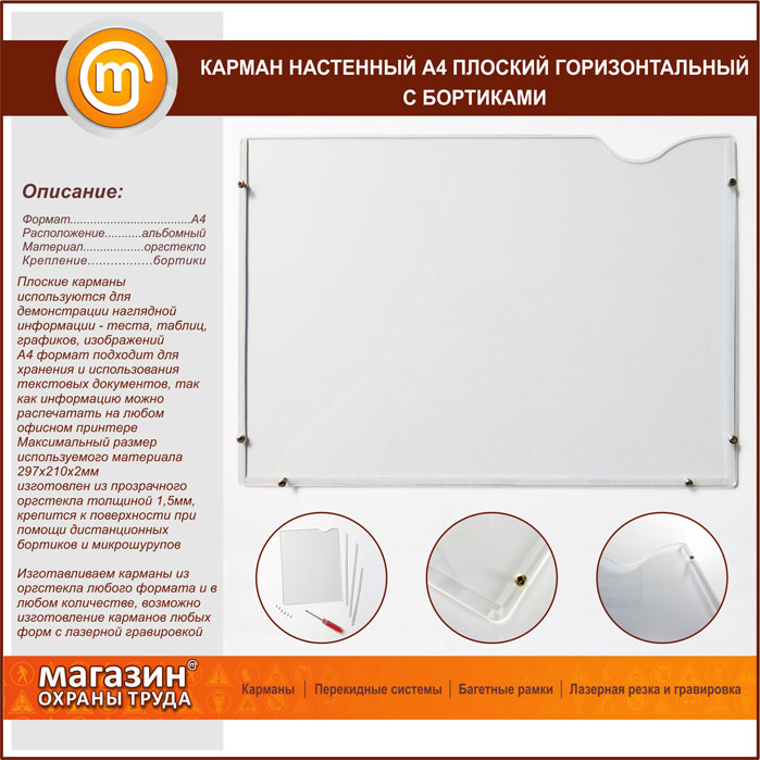 Карман настенный А4 плоский горизонтальный с бортиками в Ульяновске купить