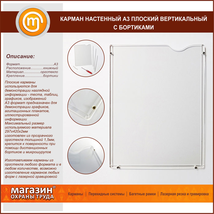 Карман настенный А3 плоский вертикальный с бортиками в Ульяновске купить