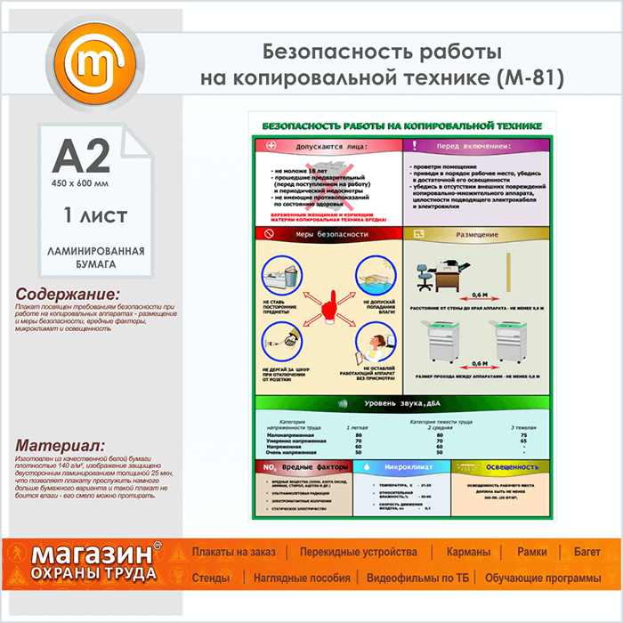 Плакат «Безопасность работы на копировальной технике» (М-81, ламинированная бумага, А2, 1 лист) в Ульяновске купить