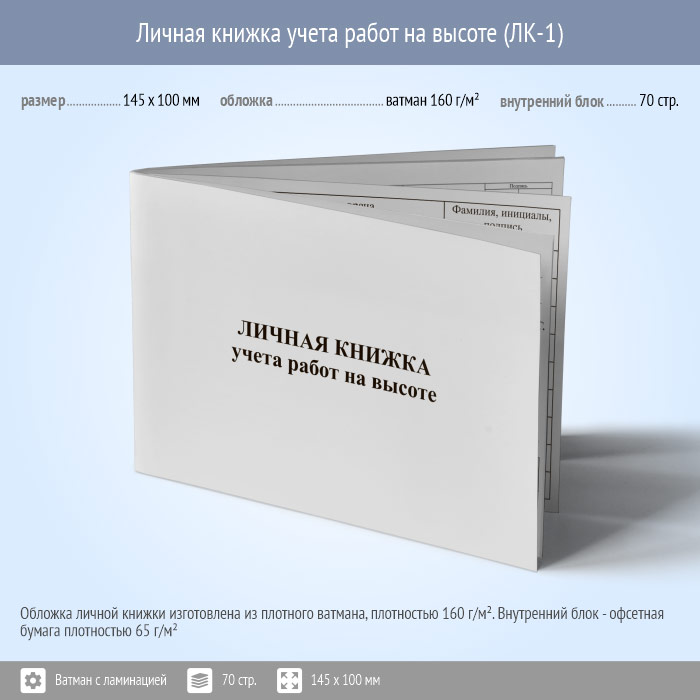 Данная личная книжка удостоверяет количество отработанных часов при работе на высоте; время, потраченное на подготовку оборудования и средств защиты, обследование и испытание оборудования, обследование и подготовку рабочего места; сведения о максимальной высоте, на которой проводилась работа и наименование высотного объекта